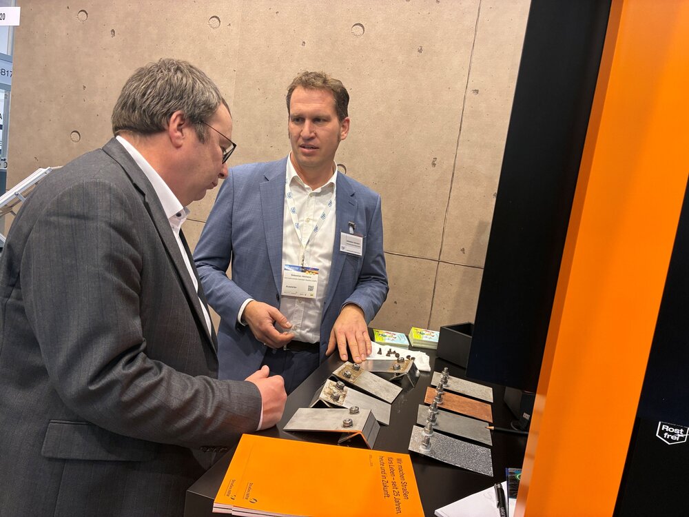Auf dem Stand von Straßen.NRW hatte die Informationsstelle Edelstahl Rostfrei die Gegenheit, die neuesten Ergebnisse aus der Werkstoffforschung, insbesondere zu Duplexstahl und dessen Anwendung in Strassentunneln darzustellen. Diese Ergebnisse ließ sich auch Minister Oliver Krischer vom ISER-Geschäftsführer Dr.-Ing. Sebastian Heimann erläutern. Die hohen Anforderungen an die Technische Gebäudeausstattung in Tunneln, einhergehend mit der teils sehr hohen Korrosivität in Tunneln machen den nichtrostenden Duplexstahl zu einer echten Alternative.